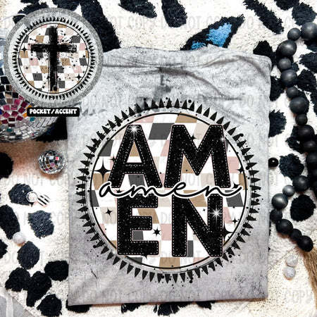 AMEN CHECKERED CIRCLE – FRONT+BACK – DTF TRANSFER