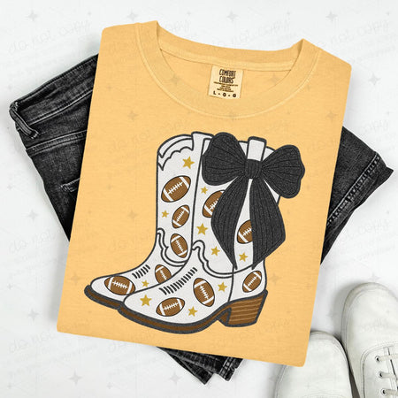 COQUETTE FOOTBALL BOOTS – BLACK W/FAUX GLITTER – DTF TRANSFER