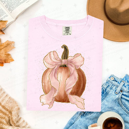 COQUETTE LACE BOW PUMPKIN – FAUX GLITTER/FAUX LACE – DTF TRANSFER