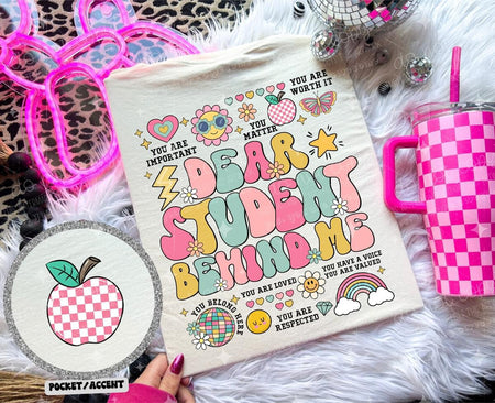 Be the first to review “DEAR STUDENT BEHIND ME – FRONT+BACK – DTF TRANSFER”