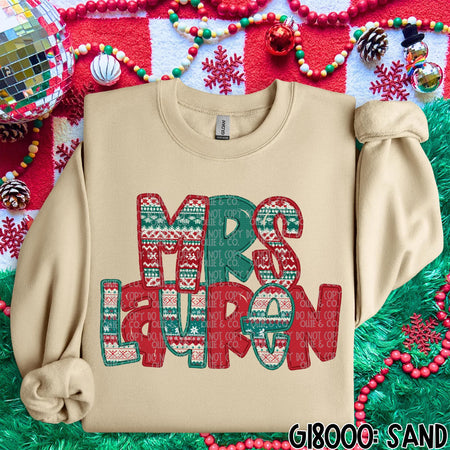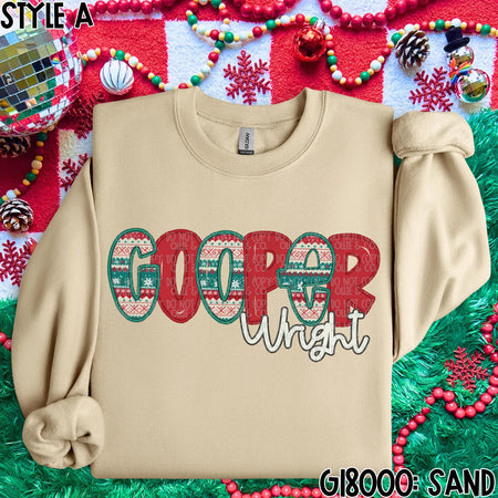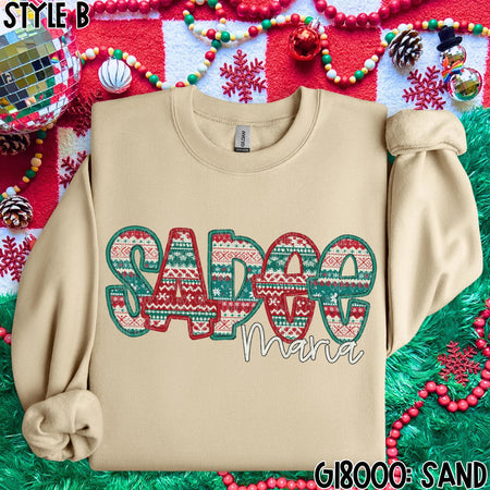 CHRISTMAS SWEATER NAMES – FAUX EMBROIDERY – MOCKUP ONLY