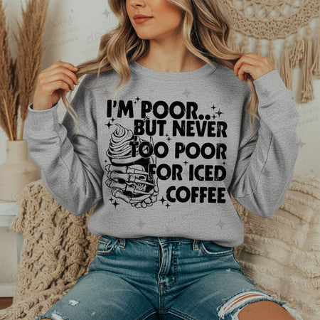 I’M TOO POOR BUT NEVER TOO POOR FOR ICED COFFEEE – DTF TRANSFER