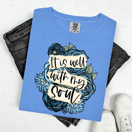 IT IS WELL WITH MY SOUL – BLUE FLORAL BACKGROUND – DTF TRANSFER