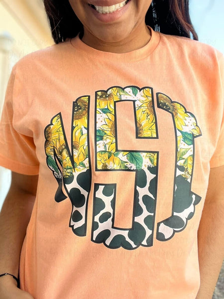 SUNFLOWER/COW PRINT MONOGRAM – CUSTOM TRANSFER