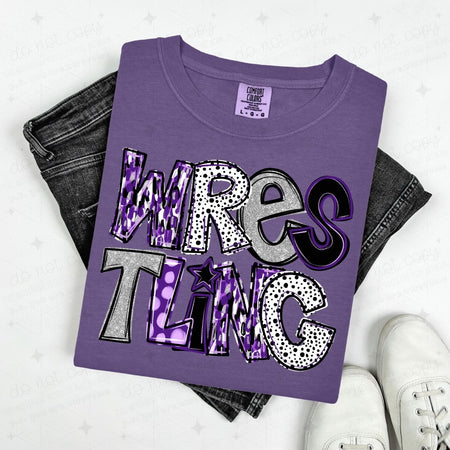 WRESTLING – PURPLE/SILVER/BLACK – DTF TRANSFER